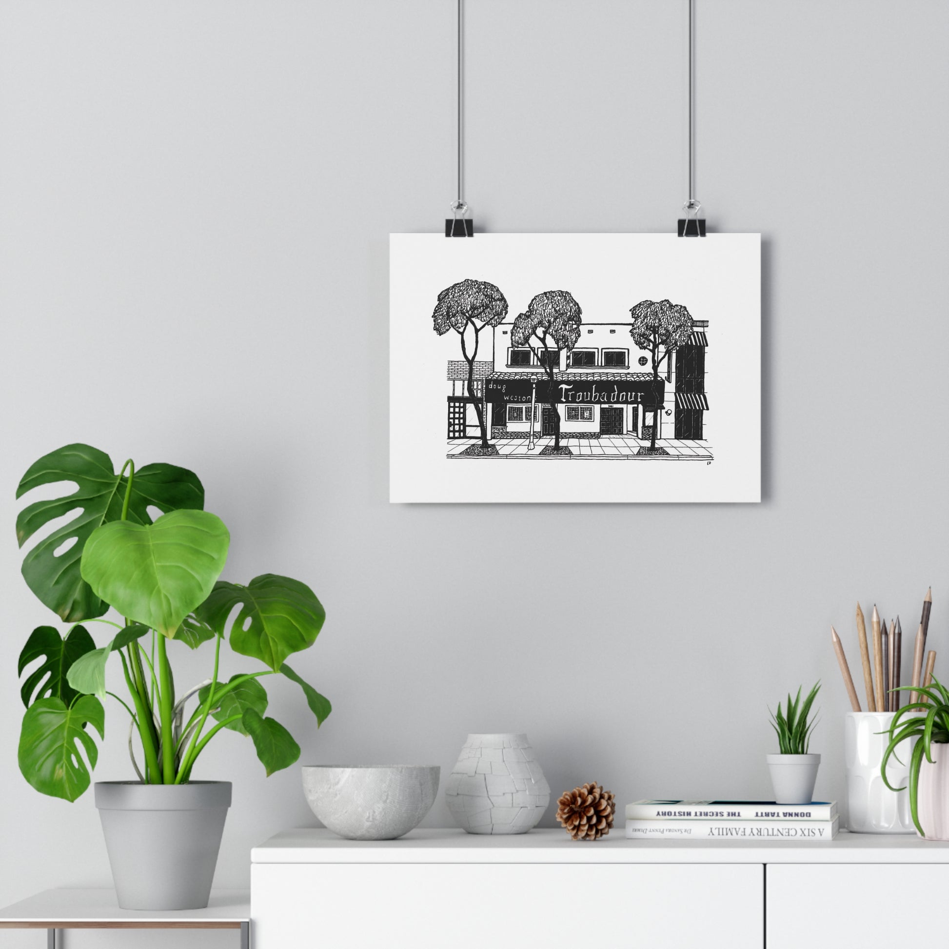 Print of original hand-drawn, fine-line art of Troubadour, Los Angeles, USA.